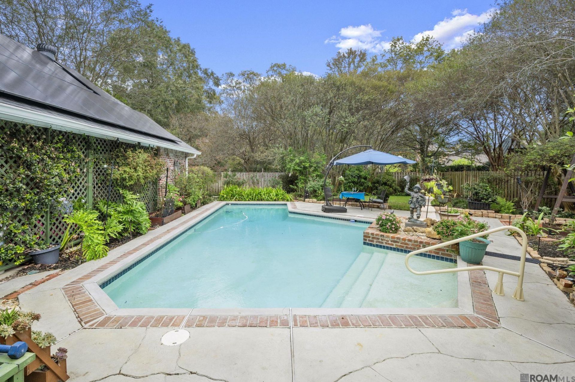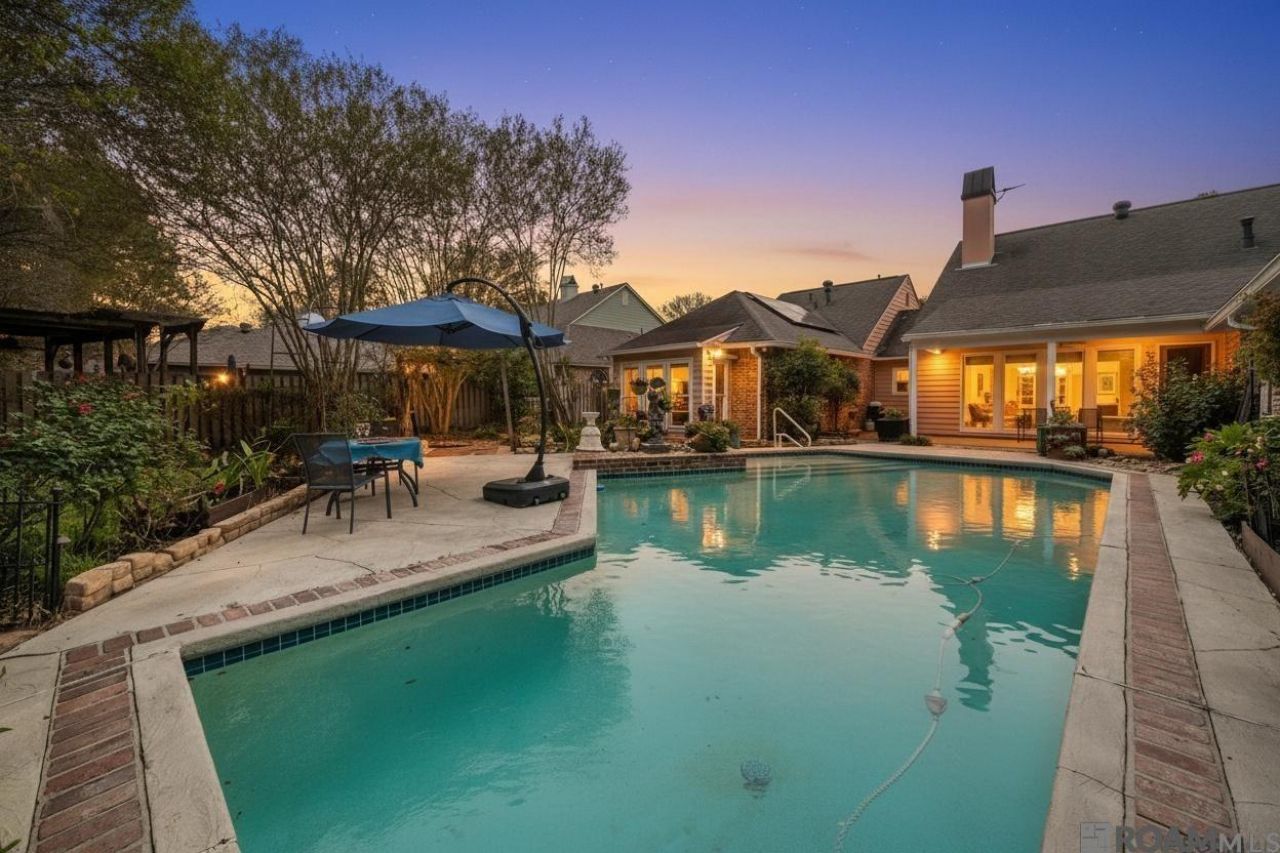 Solar-powered and generator-ready Creole Cottage on a dead-end corner lot in Live Oak Estates, just off Highland Road. Designed for energy-efficient living, this home features solar panels, a 6-year-old Generac whole-home generator, and two recently serviced HVAC systems, helping keep everyday operations more predictable and manageable. Heated pool with cool decking, Wi-Fi controls, and solar-powered equipment offers year-round enjoyment. Kitchen blends French Country style with function, including brick flooring, marble-accented and granite countertops, new appliances, custom pull-out drawers, and a walk-in pantry with automatic lighting. Living room overlooks the pool with updated windows, custom coverings, gas fireplace, and built-ins. Formal dining with refinished pine and bamboo flooring. Breakfast nook with garden views and shutters. Office/library with floor-to-ceiling shelving and sitting nook. Private primary suite with sitting area, spa-like bath, soaking tub, glass shower, dual vanities, and two walk-in closets. A well-designed home offering comfort, privacy, and thoughtful efficiency throughout. Schedule a showing with us today!