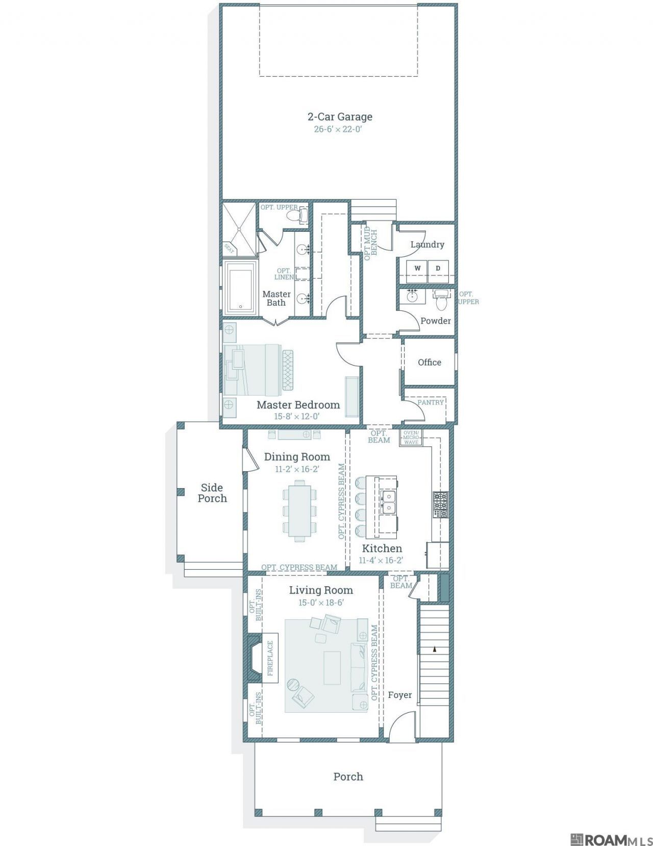 Charming Gabrielle B floorplan by Level Homes underway in phase 9 of Rouzan! The Gabrielle is a two-story home with just over 2300 sq feet of living area and has 4 bedrooms, 3.5 baths, a pocket office and a loft! Enter this home from the very inviting front porch with four stately columns, a gas lantern and brick steps into the foyer which opens to the beautiful wrought iron staircase and the open kitchen, dining and living room. The spacious living room overlooks the front porch and is centered around a gas vent-less fireplace and has space for 'optional built ins. The gourmet kitchen features custom painted cabinets with extended upper cabinets and under cabinet lighting, large center island with a 30 single basin farm sink and pendant lighting, Calacatta Fioressa Quartz countertops with a 5x5 artisan white tiled backsplash. Pot filler and stainless appliance package including a WOLF cooktop. The kitchen overlooks the dining area, and both have great views of the side porch. The master bedroom is downstairs and privately located off the rear of the home with a spa-like bath featuring a separate tub and shower, dual vanities, framed mirrors and a huge walk-in closet. The walk in laundry room, half bath and office are located off the garage entrance at the rear of the home. Upstairs you will find a loft area with three beds and two full baths (one is a jack and jill). The yard will be professionally landscaped and fully sodded. Estimated completion date May 2026, buyers can pick/approve colors and options for a limited period of time. Other lots/plans available. Come experience all that Rouzan has to offer with nearby shopping, dining, walking, outdoor fitness, swimming pool, fitness, clubhouse and more! Home will be ready in MAY!!