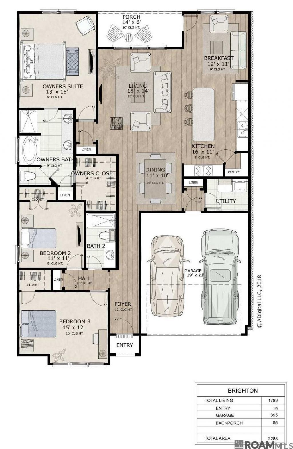 The Brighton is a charming 3-bedroom, 2-bath new construction home featuring modern farmhouse style and thoughtful design. Enjoy 10' ceilings, luxury vinyl plank flooring, and a chef-inspired kitchen with granite countertops and gas cooktop. The private owner's suite offers a walk-in tile shower and soaking tub. SmartHome features provide added convenience and security. Located in a quiet, well-connected community, this home blends comfort, style, and modern living. Upgrades: LV2 Carpet Upgrade to Vinyl LV2: (Primary BR + Closet/BR2/BR3) LV2 Gourmet Kitchen w/ Vent Hood LV2 Granite Countertop LV4 Backsplash Cabinets to the Ceiling Trash Can Pull Out LV2 Cabinet Hardware (Satin Nickel , Rounded Pulls) LV2 Tiled Shower in Primary Bth Upgrade Mirrors: 11269