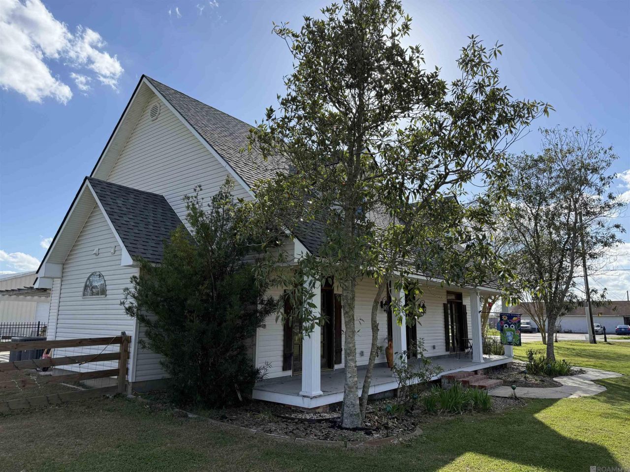 Traditional Acadian Style Home on 1.25 Acres, No HOA, 40x40 Shop with 2 roll up doors and separate driveway, Gunite pool with waterfall, fenced backyard, and Bonus outdoor space finished in Cypress with kitchen and bath. New Roof 2024, New Windows 2023, New water heater (1 of 2) 2024, New HVAC (1 of 2) 2023, New Mini Split in Bonus space 2024. Entrance from front porch to foyer showcases a vaulted ceiling and staircase with second floor landing. This home features an open plan with downstairs primary suite, renovated primary bath with soaking tub, separate custom shower, dual vanities, laundry chute, and walk in closet. Large laundry room with built in storage opens to primary bath and is also accessible through the office nook off of entry foyer. Dining/Kitchen combo with stainless appliances, granite counters, oak cabinets, bar seating, center island, walk-in pantry, and 1/2 bath located at rear entry hall. Living room also has impressive, vaulted ceilings, a gas fireplace, and French doors opening to covered back porch. Upstairs contains 2 additional bedrooms with built in bench seats at the dormer windows, large walk-in closets, the second full bath with laundry chute and jetted tub. There is also a bonus room on the second floor, ideal for an office or playroom. Wood and tile floors throughout. Make your appointment today to see this unique custom home!
