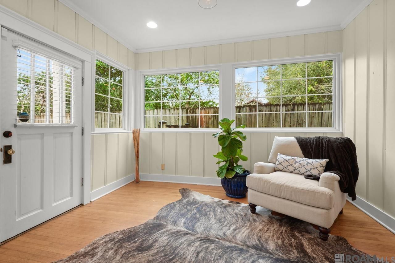 Charming cottage in Hundred Oaks with a detached 472 sq. ft. studio apartment?perfect as an income-producing rental, Airbnb, or home office. The main home has been thoughtfully updated with modern amenities while preserving its original integrity and style. The flexible, open floor plan flows beautifully for entertaining and everyday living. Original hardwood floors, antique French doors with a custom-made copper awning off the living room, solid interior and exterior doors with original glass knobs, and shiplap closets are just a few of the classic touches. The kitchen boasts leathered granite countertops, slate tile floors, stainless steel appliances?including a gas range?and a farmhouse sink. The bathroom features a newly refinished vintage tub, updated shower surround, furniture-style vanity, beadboard wainscoting, and marble tile floors. Enjoy the New Orleans"style courtyard area with a large covered deck, updated farmhouse-style lighting, and an 8-ft. privacy fence with gate. Major updates include rewired electrical, replaced water heater and HVAC, new energy-efficient windows, and French drains. Parking accommodates up to five cars. The studio apartment offers a Euro-style full kitchen, stackable washer and dryer, and a clawfoot tub in the bathroom. Situated on two lots, the property also features an extra-deep backyard and a covered storage area behind the apartment.
