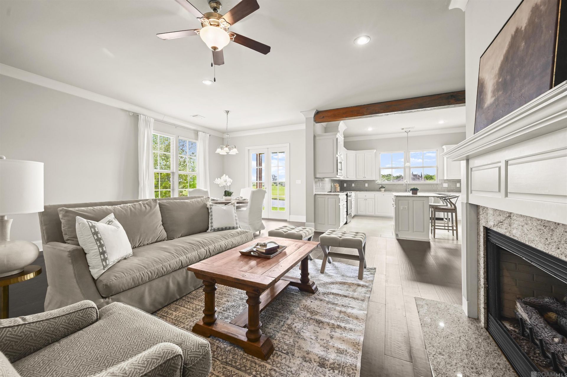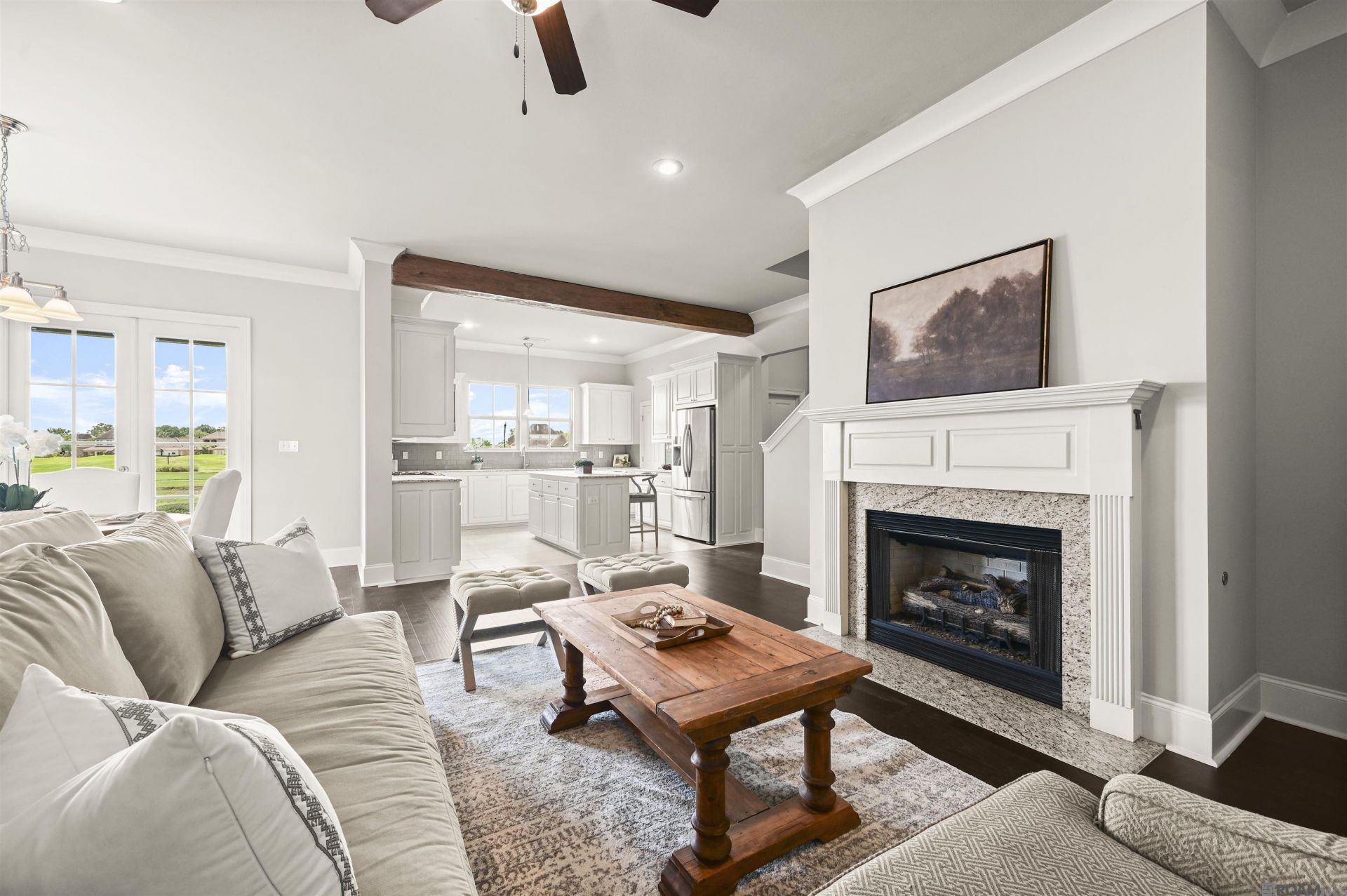 Waterfront living in the sought-after Golf Community, Copper Mill! This stunning 2-story home offers 3 bedrooms, 2.5 baths, and serene lake views from the moment you step inside. Soaring ceilings, brand-new wood flooring, and a warm gas fireplace anchor the open-concept living area, which flows seamlessly into the dining space showcasing peaceful backyard water views. A striking wood ceiling beam frames the chef's kitchen, outfitted with granite countertops, subway tile backsplash, stainless appliances, gas range, built-in microwave, an oversized island, and a walk-in pantry. Downstairs primary suite offers a spa bath with soaking tub, separate shower, double vanity, and walk-in closet with laundry access. Upstairs features 2 sizable bedrooms, full bath, and a spacious den that would be perfect as a 4th bedroom or game room. Copper Mill residents enjoy resort-style amenities including a swimming pool, tennis courts, playgrounds, and scenic walking paths, all just minutes from everything Zachary has to offer. Major updates bring true peace of mind: new roof (2025), fresh exterior paint (2025), upstairs HVAC (2023), brand-new wood flooring (2026), and new upstairs carpet (2026). Move-in ready and truly one of a kind!