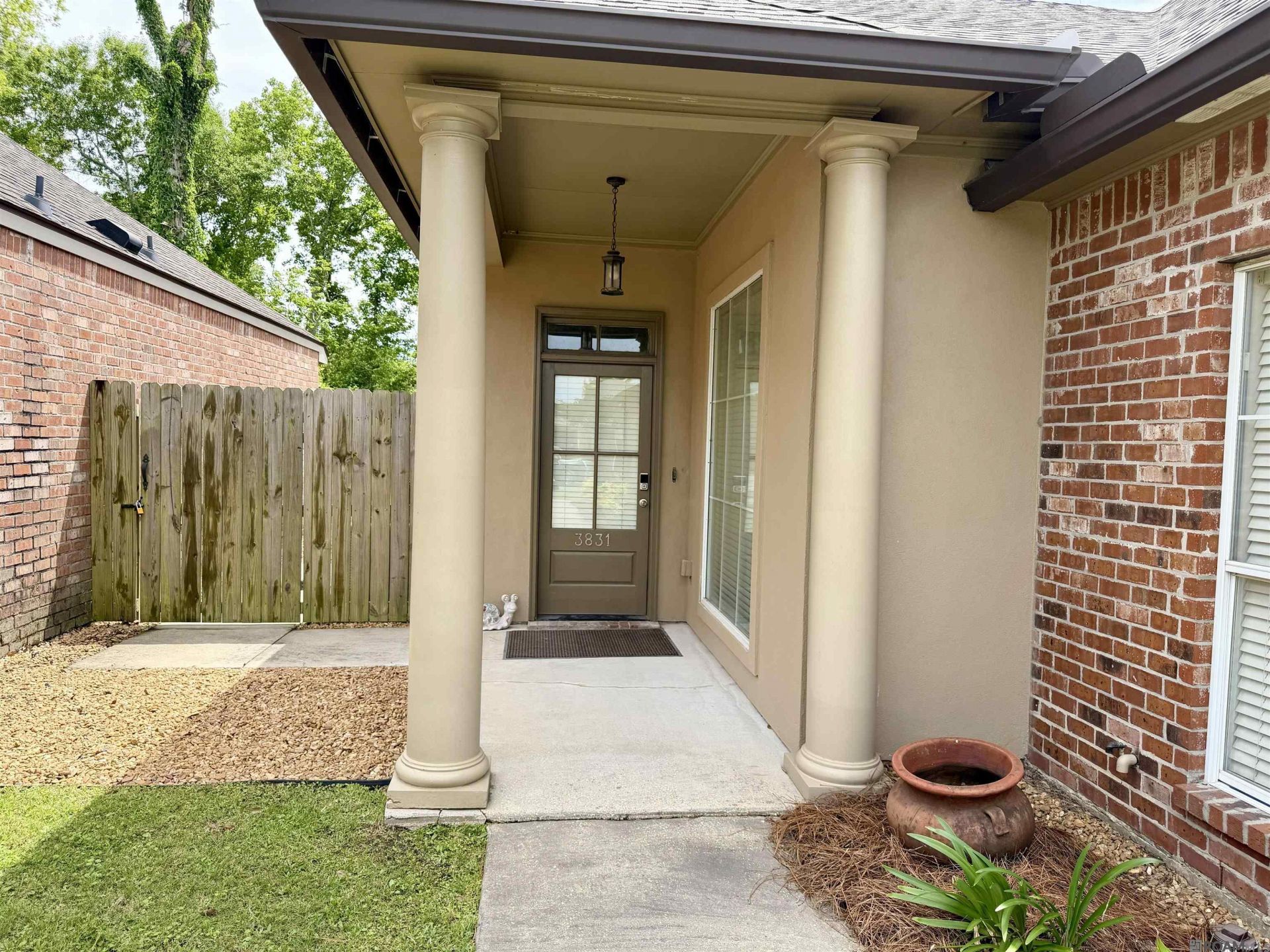 This renovated home is in an ideal location off of River Rd., minutes from the LSU campus, move-in ready! Three bedrooms and two baths, high ceilings, crown molding, no carpet, granite counters in the kitchen, stainless appliances. Washer, dryer, refrigerator, all appliances stay! Lighting/fans updated, including lots of recessed lighting; roof is 2022; exterior painted, landscaped, and gutters added. The primary suite is spacious with an en suite bath with a separate garden tub and shower, and a large walk-in closet, dual vanites. The back yard is a perfect size, private with privacy fencing, extended patio. Quiet community, 2 car garage, HOA covers the front yard mowing and maintenance. Won't last!
