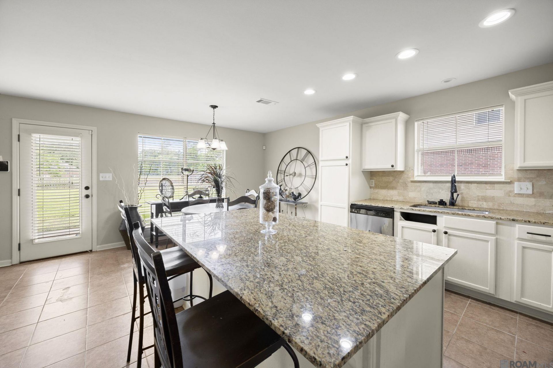 Waterfront property on a fully stocked lake! This 4-bedroom, 2-bath traditional-style home offers 2,008 sq ft and is ready for your personal touch. The kitchen features granite countertops and a stone backsplash. Major updates include a 4-year-old roof, 3-year-old hot water heater, and HVAC system (interior and exterior) replaced in 2024. The garage door and shutters were freshly painted last year. Enjoy a spacious, open living room with wood laminate flooring and a gas, ventless fireplace. Large windows in the living and dining areas provide abundant natural light. The split floor plan offers added privacy, with the laundry conveniently located near the three additional bedrooms. The primary suite includes a large bedroom and bath with separate shower, dual vanities, and dual closets. Washer, dryer and refrigerator to remain. Situated on a generous lake lot, this property does not require flood insurance and has no HOA. A great opportunity to make this waterfront home your own!