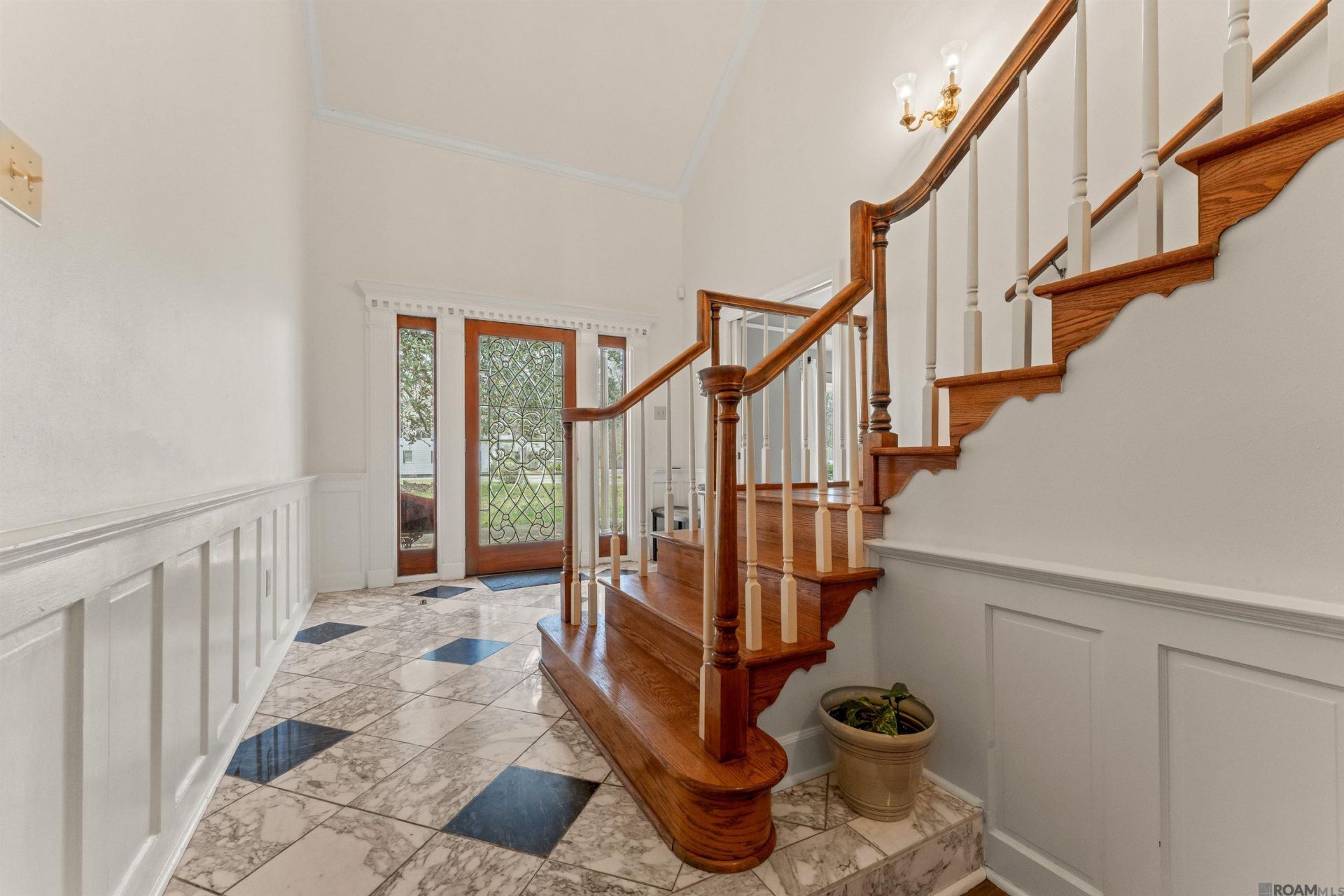 RARE FIND: DUAL PRIMARY SUITES & ECO-FRIENDLY EFFICIENCY IN RIVERBEND! Looking for unmatched space, privacy, and lower utility bills? This expansive residence on a PREMIER LOT offers a versatile floor plan rarely seen at this price point. Whether you need a true MOTHER-IN-LAW SUITE or a massive home office, the DOWNSTAIRS PRIMARY EN SUITE provides effortless accessibility, while the UPSTAIRS PRIMARY serves as a spa-like retreat with dual closets, a jetted tub, and a private dressing area. The grand entrance features 20-FOOT CEILINGS and a custom wood staircase leading into formal living and dining areas. The OVERSIZED 34x17 GREAT ROOM comes complete with a FULL WET BAR, perfect for grand-scale entertaining. French doors lead to a 49-FOOT COVERED PORCH and the ultimate OUTDOOR SANCTUARY. Featuring a SWIMMING POOL and sunroom that are ENTIRELY COVERED AND SCREENED, you can enjoy a bug-free environment and significantly simplified maintenance year-round. All three upstairs bedrooms feature French doors opening onto another 49-FOOT SCREENED BALCONY overlooking the pool. Modern upgrades provide total peace of mind and efficiency, including SOLAR PANELS, a WHOLE-HOME GENERATOR, and a TANKLESS WATER HEATER. The exterior features a FOURTH FULL BATH conveniently located near the pool and a massive lot with multiple patios. Situated with quick access to RIVER ROAD and the LSU CAMPUS, this home is perfectly positioned for enjoying world-class athletic events and university amenities. This property provides a rare combination of SIGNIFICANT SQUARE FOOTAGE, functional design, and a peaceful environment just minutes from the heart of the city. Enjoy the luxury of space and the comfort of being HOME. STUNNING POOL, ENERGY EFFICIENT, AND ROOM FOR EVERYONE!