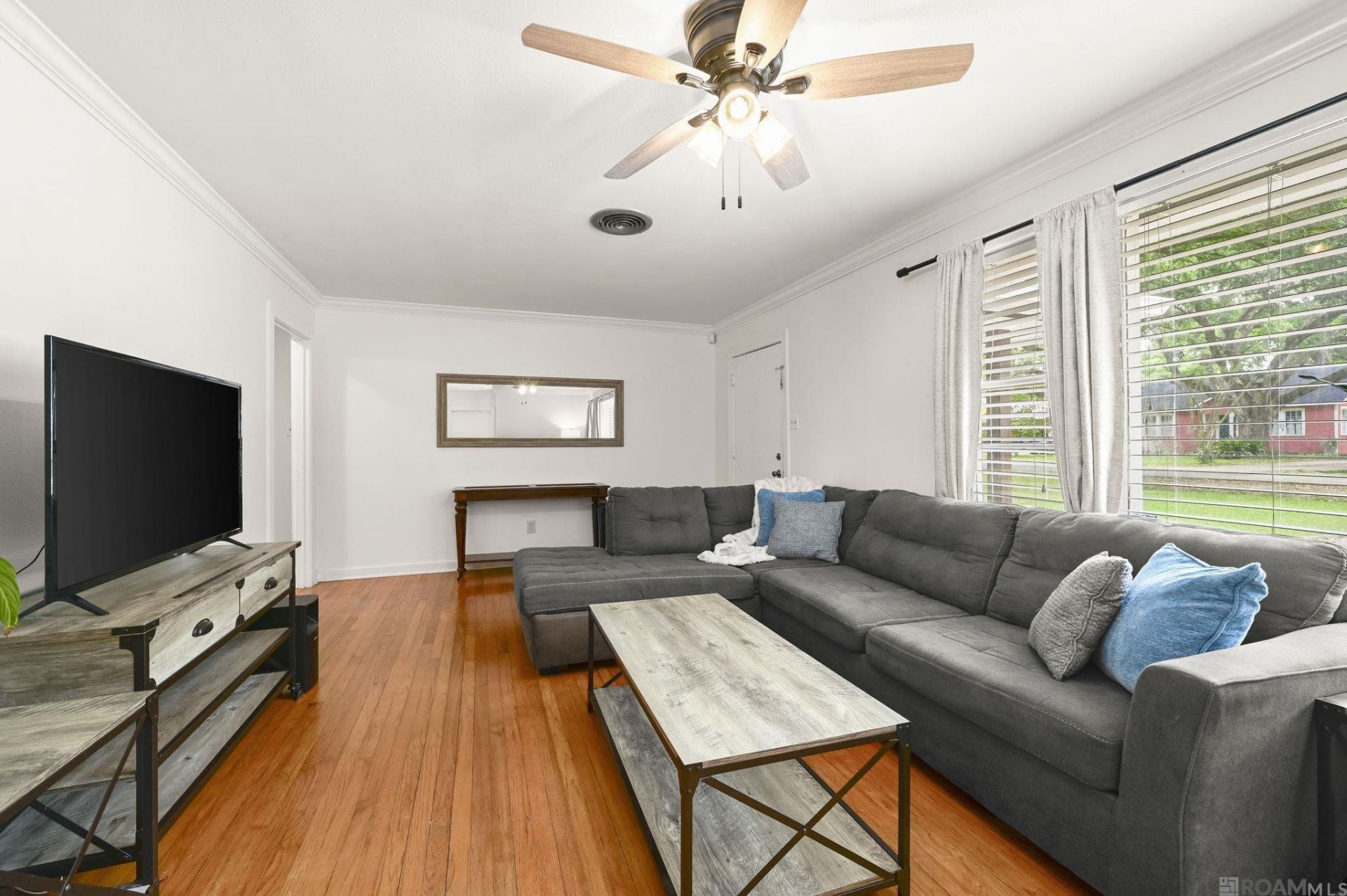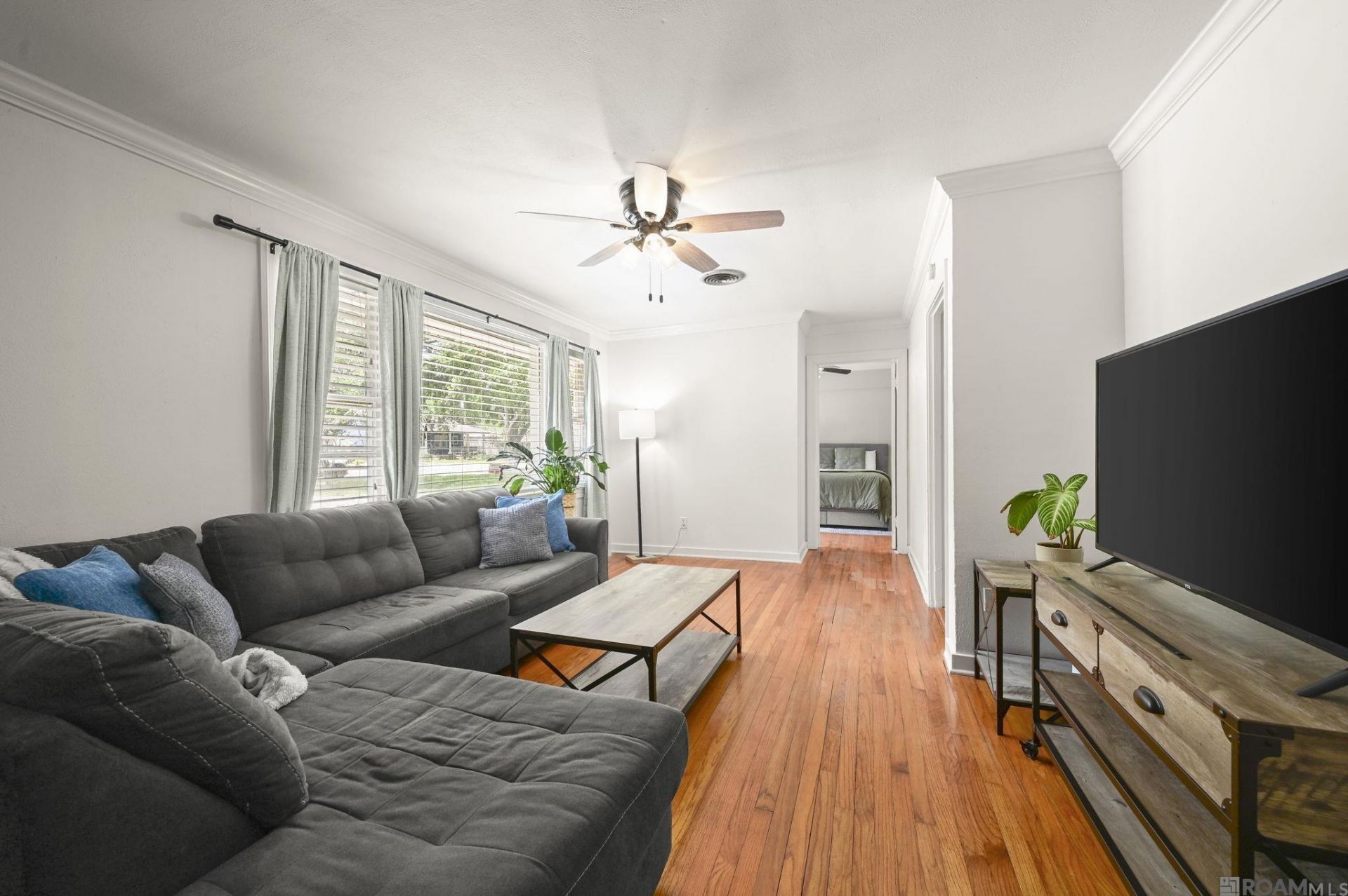 Charm and character describe this cottage-style home located in Goodwood Estates. Located just minutes from Towne Center, Government Street, and downtown Baton Rouge. This 3-bedroom, 2-bath home features real wood flooring throughout creating a clean and timeless feel. Bright, airy living spaces are filled with natural light from large windows, and the split floor plan offers both comfort and functionality. Enjoy an eat-in breakfast area plus a formal dining space overlooking the spacious backyard. The primary bathroom has been updated with a custom tiled shower, new vanity, and added laundry area. Outside, you will find a fully fenced yard complete with a covered patio, extra storage/workshop, and more parking. The home has a whole house generator, all new exterior paint, and fresh landscaping. Enjoy classic charm, and functional living in an unbeatable location!