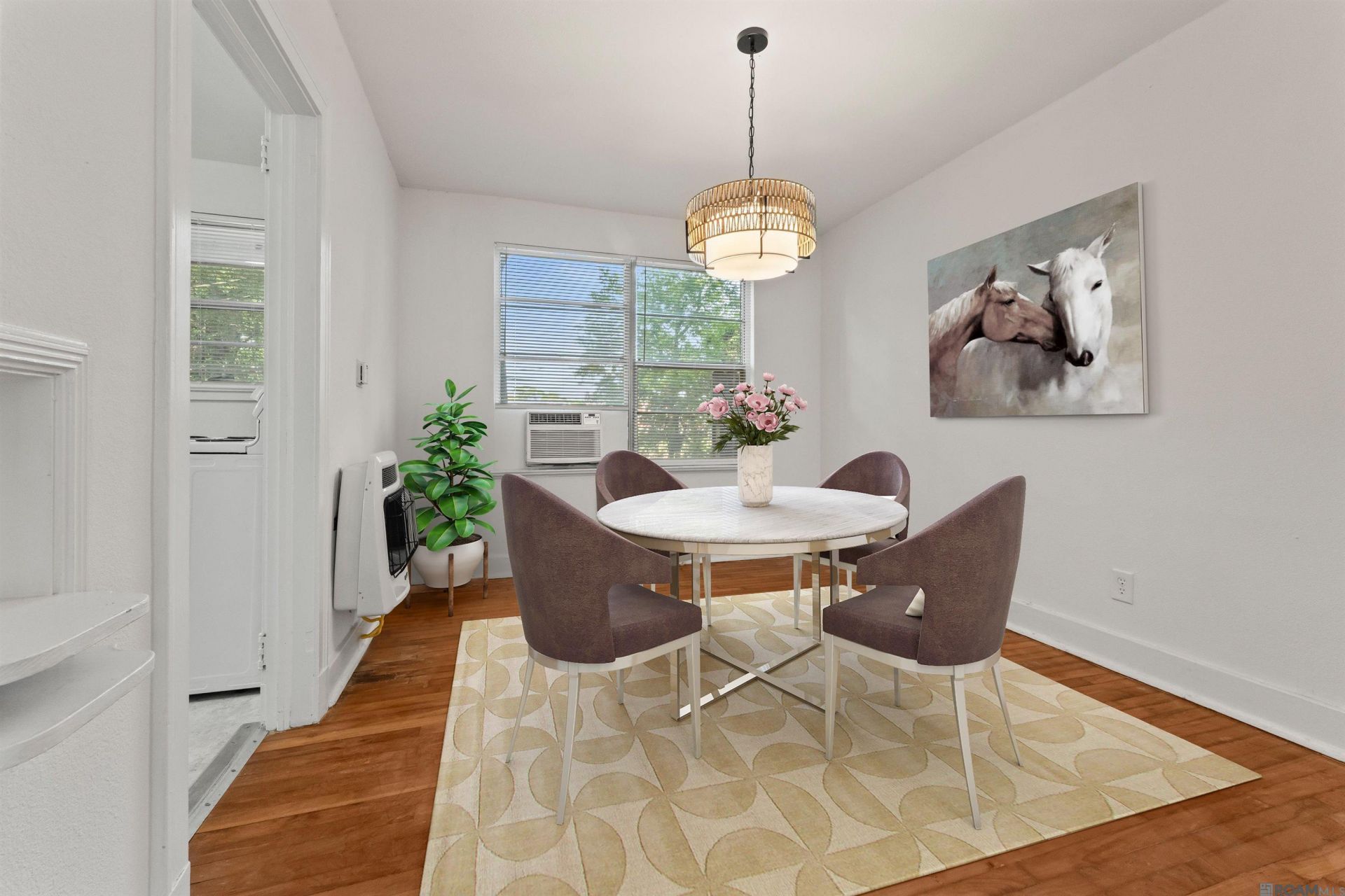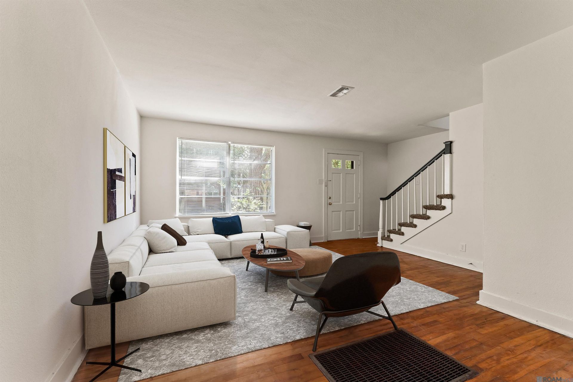 Charming 2BR/1BA Condo in the Heart of Baton Rouge Located just minutes from LSU, top-rated restaurants, shopping, and more, this charming condo blends vintage character with fresh, modern updates. A fresh facelift includes brand-new white kitchen cabinets, white appliances, a new backsplash, updated lighting, and fresh paint throughout ? all move-in ready. Nice walk-in closets in both bedrooms and one in the hall as well. A stacked washer and dryer is also included for added convenience. What truly sets this unit apart are its timeless details: original hardwood floors, vintage mosaic tile in the bathroom, and a 24-foot front porch framed by a classic black wrought-iron railing ? the perfect spot to relax and unwind. A secondary porch off the back door (16' x 4') adds even more outdoor living space. For just $20/month through the HOA, covered parking just steps from your back door is available ? a rare and welcome perk.