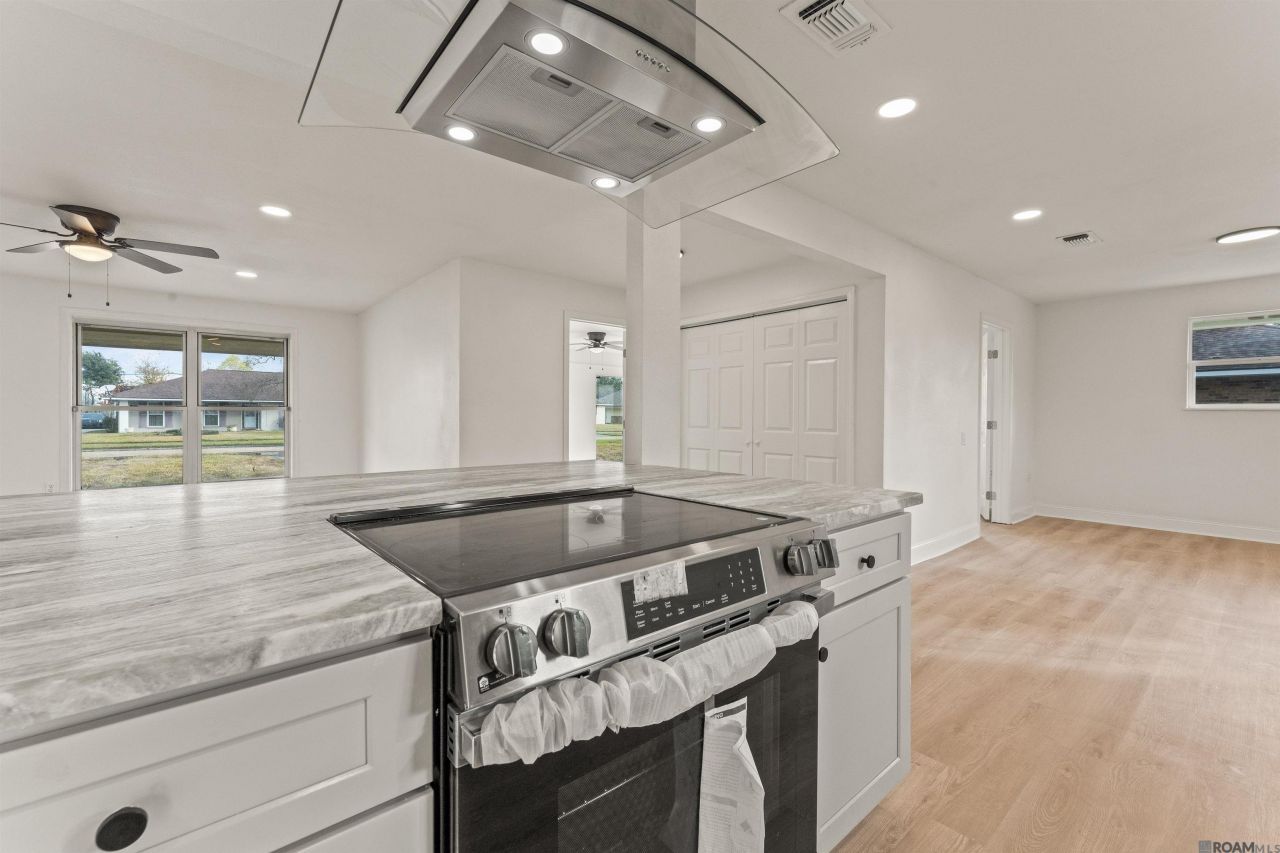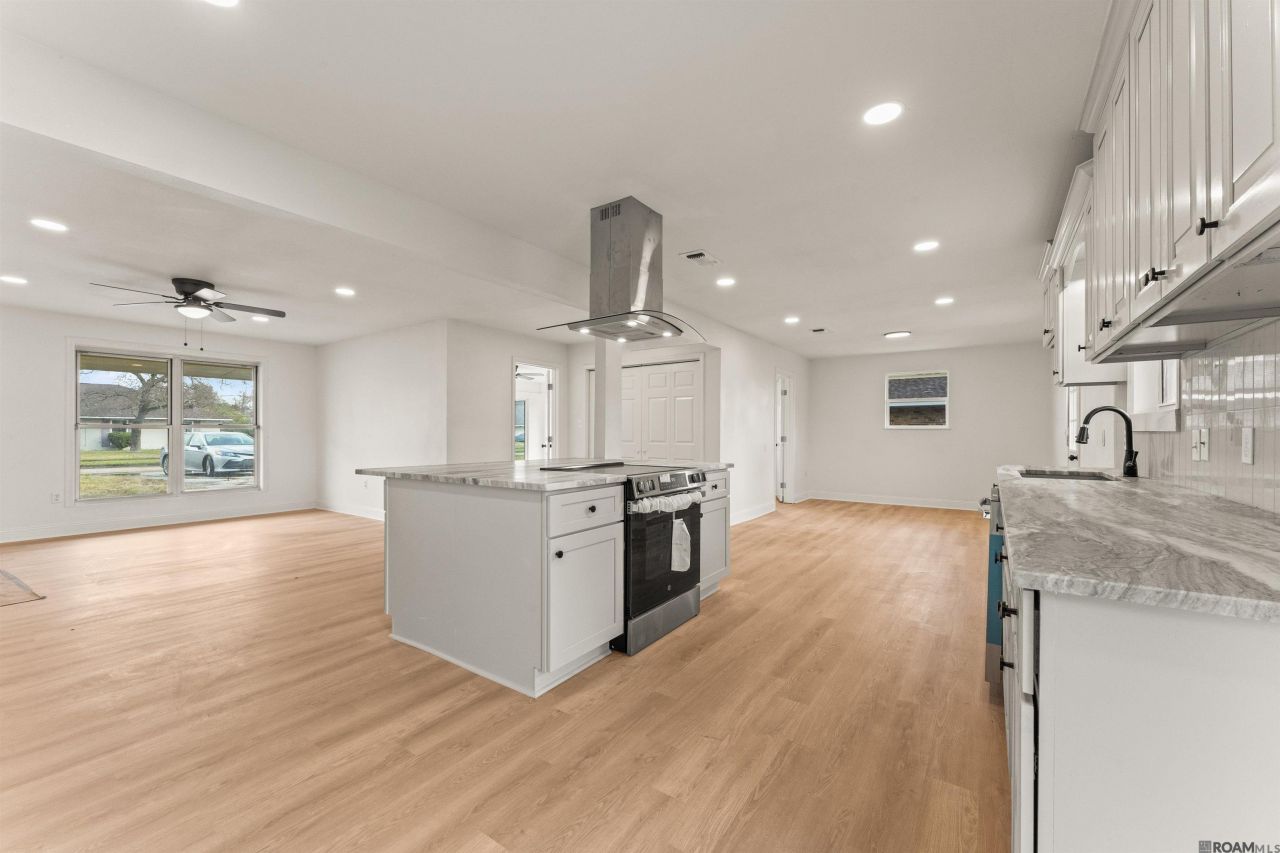 Updated price at $222,500, and the seller is offering a concession that may be used toward buyer closing costs, prepaids, or an interest rate buydown (subject to lender approval and terms). Welcome to this fully renovated 4-bedroom, 2-bath brick home with a newly updated roof in Baton Rouge 70815, located in the Cortana / Park Forest"Villa Del Rey corridor with convenient access to Florida Blvd, Airline Hwy, and I-12 connections. With approximately 1,648 sq ft, this single-story layout is designed for everyday living, offering an open main living area and multiple flexible spaces that can function as a home office, playroom, media room, or hobby room. Inside, the home features clean, move-in ready finishes including recessed lighting, neutral paint, and wood-look flooring throughout the main living areas. The standout island kitchen offers a large center island with range, sleek vent hood, stone-look countertops, subway-style backsplash, shaker cabinetry, and stainless range + dishwasher. Storage is excellent thanks to the huge walk-in pantry and a separate laundry room with upper cabinets. All four bedrooms are tucked down the hallway with two updated bathrooms, good closet space, and built-in shelving. Outside, enjoy a long driveway with plenty of off-street parking, a covered patio for grilling and relaxing, and a deep backyard with room for pets, gardening, play, and future projects (buyer to verify desired uses with parish/zoning). Close to everyday shopping and dining, this home offers a convenient Baton Rouge location with space to spread out. Ask your agent for the full list of updates?including the newly updated roof?and schedule your showing.